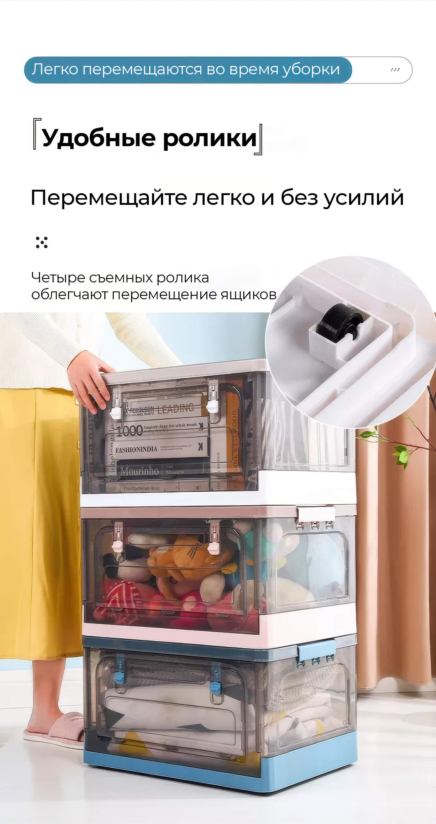 Пластиковая коробка с крышкой надежно защищает вещи от пыли и влаги, а прочная конструкция обеспечивает долговечность даже при частом использовании. Складной контейнер легко складывается, освобождая пространство, когда не нужен. Колесики делают транспортировку максимально удобной – просто катите ящик туда, куда нужно, без лишних усилий.