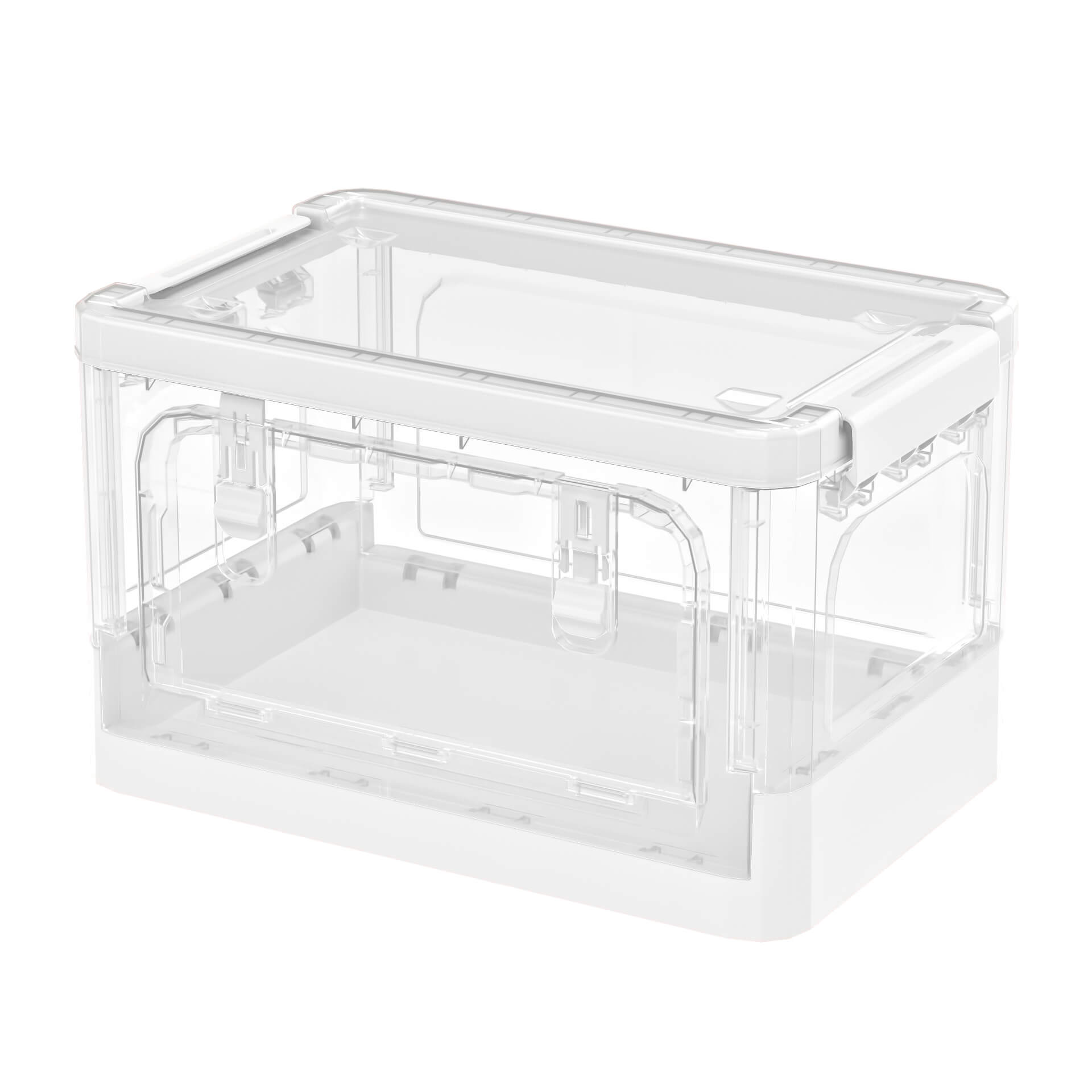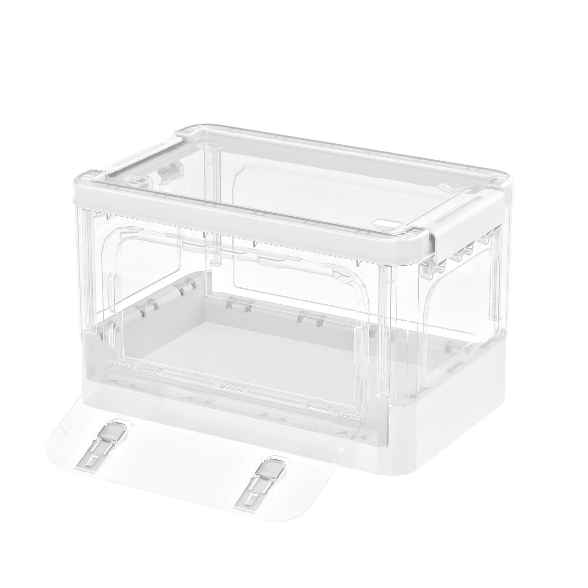 Этот пластиковый складной ящик создан для тех, кто ценит комфорт и порядок. Прозрачные стенки позволяют легко видеть содержимое, а белое дно придает изделию стильный и современный вид. Пластиковый контейнер идеально подходит для хранения одежды, игрушек, документов, бытовых принадлежностей и мелочей.