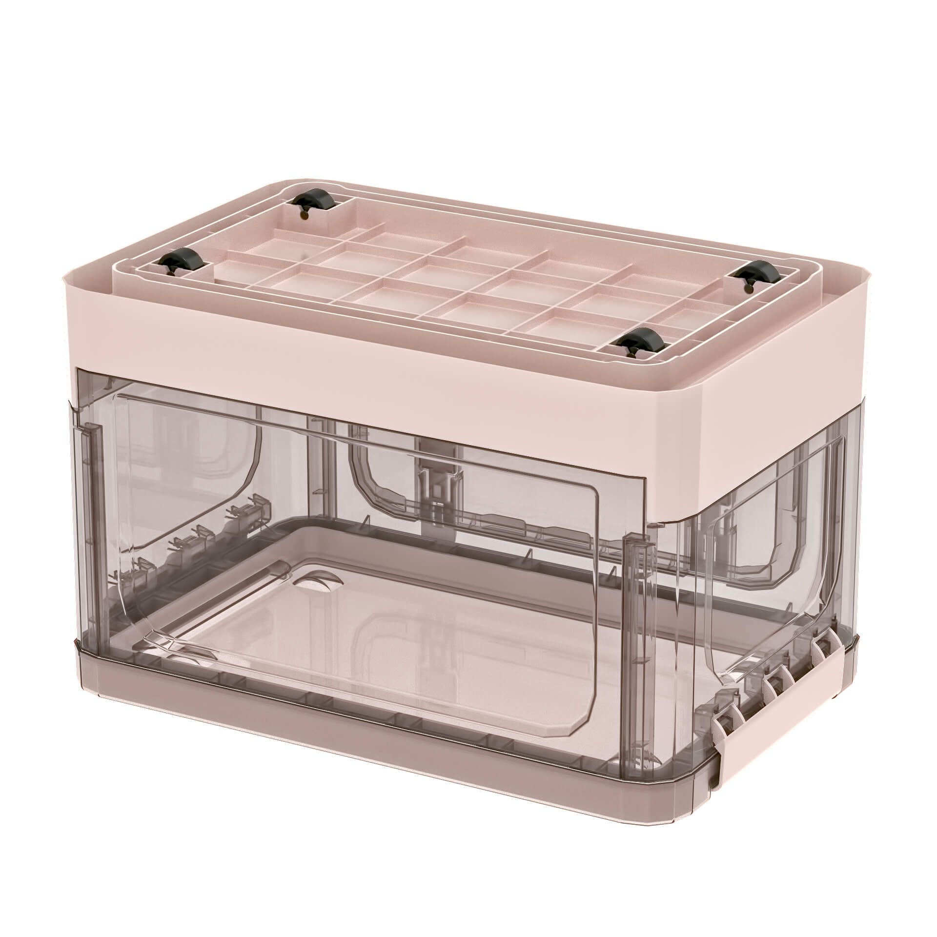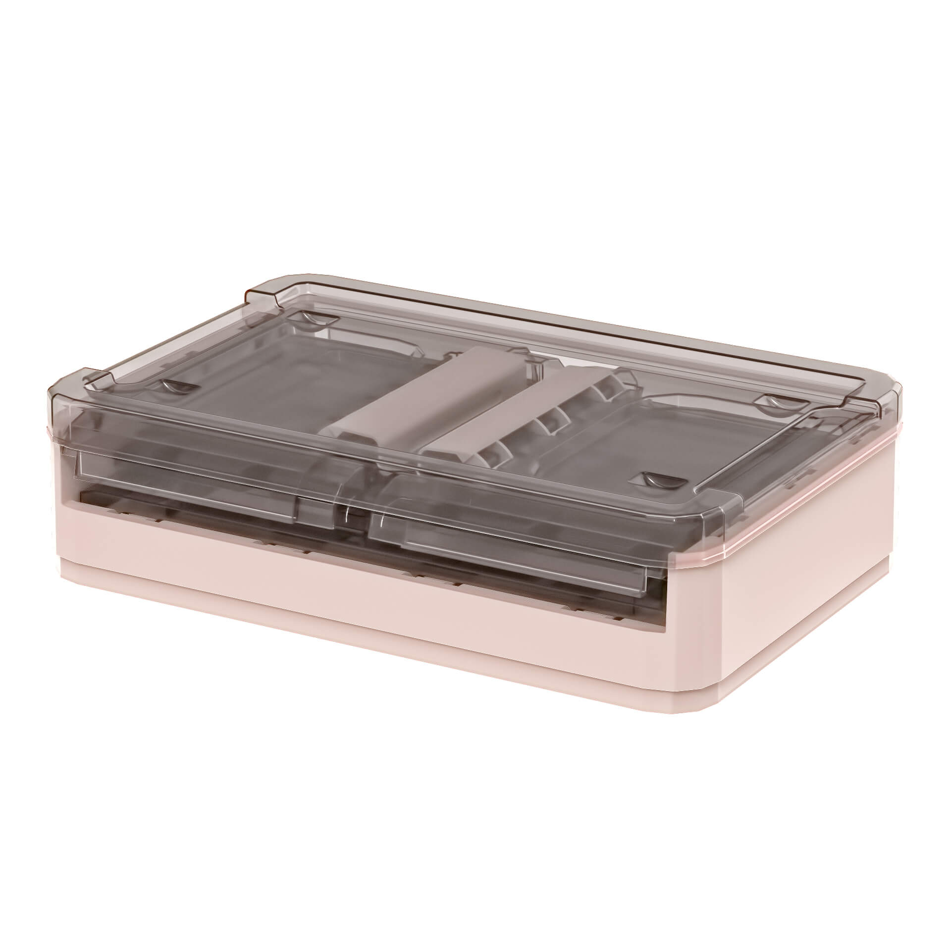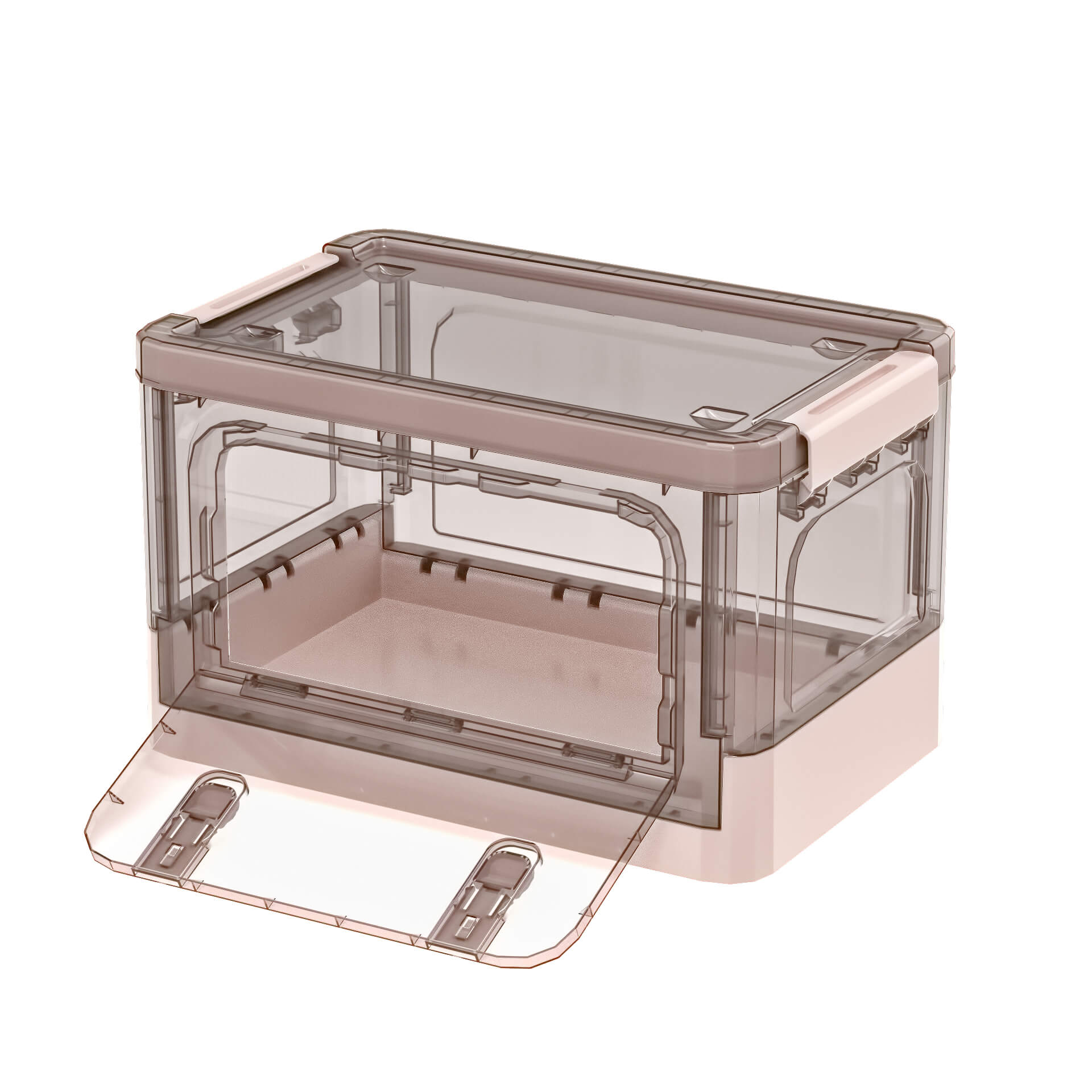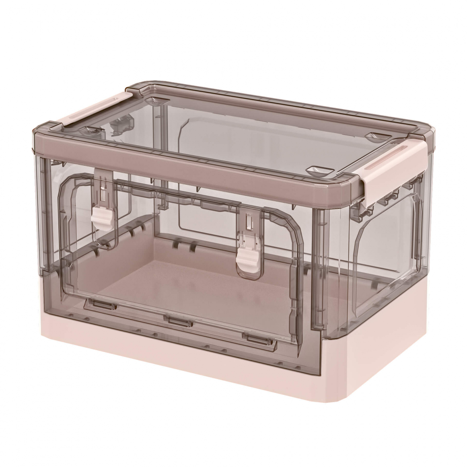 Практичный пластиковый складной ящик сочетает в себе функциональность, прочность и эстетичный дизайн. Прозрачные стенки с благородным коричневым оттенком позволяют легко видеть содержимое, а нежно-розовое дно придает изделию аккуратный и современный вид. Пластиковый контейнер идеально подходит для хранения одежды, игрушек, документов, бытовых принадлежностей и мелочей.