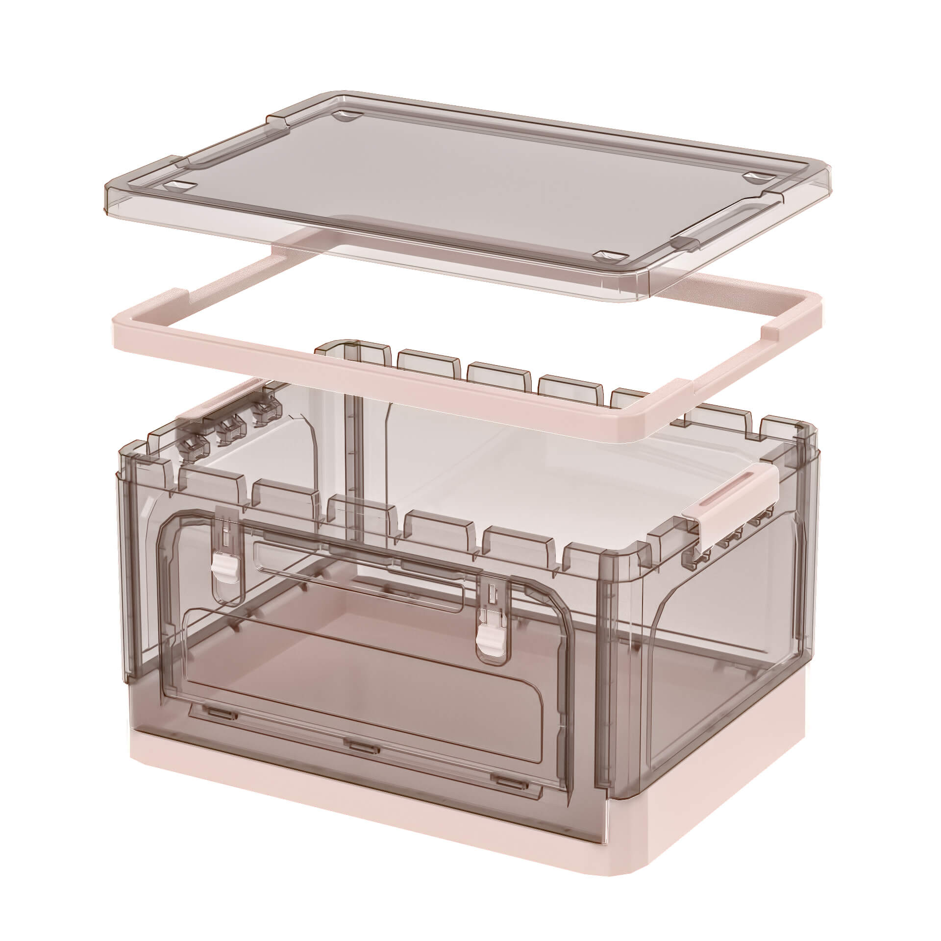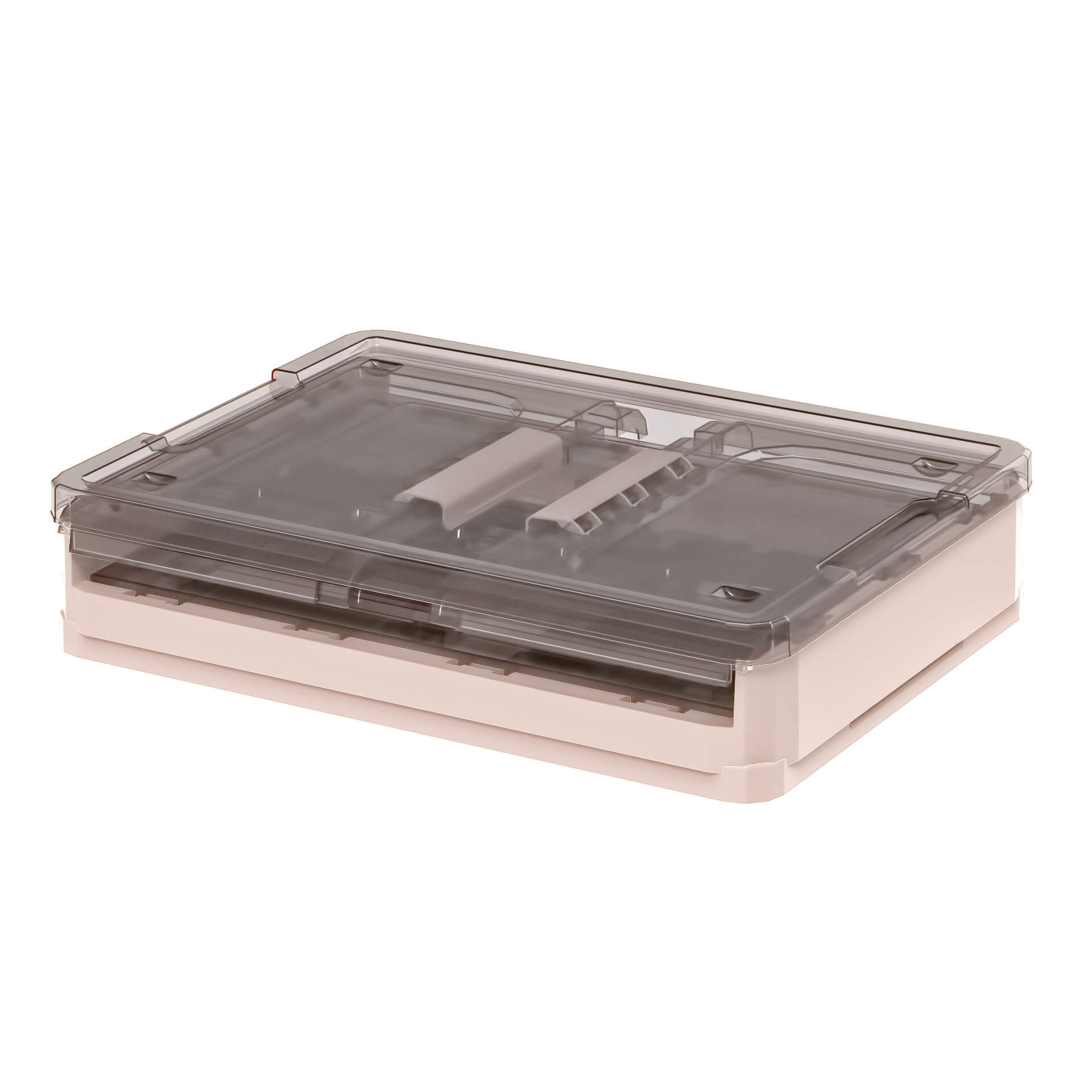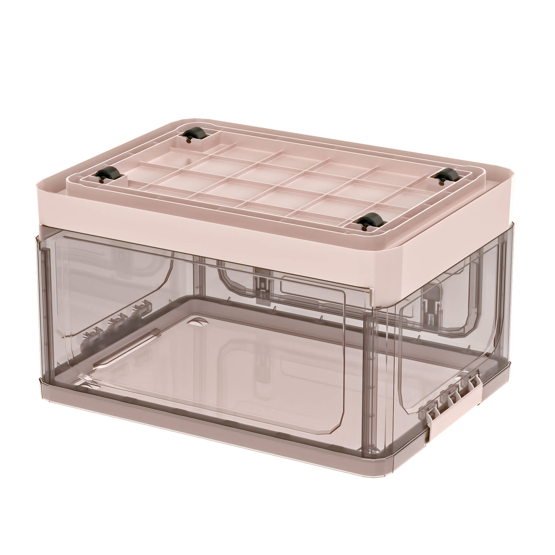 Ящик пластиковый складной прозрачный, дно розовое, 490х360х280 мм, с колесиками