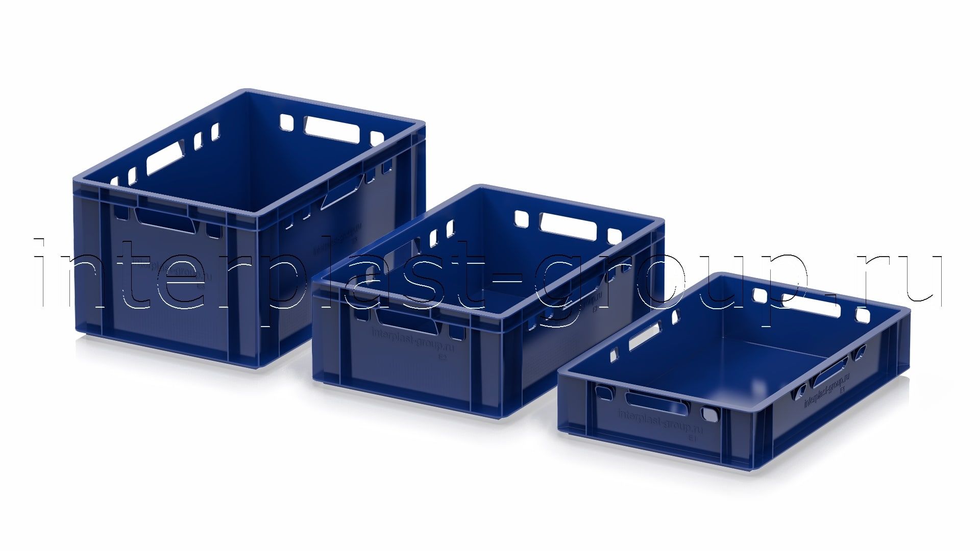 Ящик для мяса Е3 это третий по размеру в линейке мясных ящиков. Разработан специально для использования в мясной промышленности. Отлично штабелируется и собирается в единый сет со всеми ящиками серии. Изготовлен из первичного полиэтилена, и адаптирован для хранения в холодильных и морозильных камерах.
