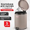 С вместимостью 5 литров, это ведро идеально подходит для помещений с невысокой проходимостью. Оборудовано удобной педалью для открывания, а плотно закрывающаяся крышка надёжно предотвращает распространение неприятных запахов.