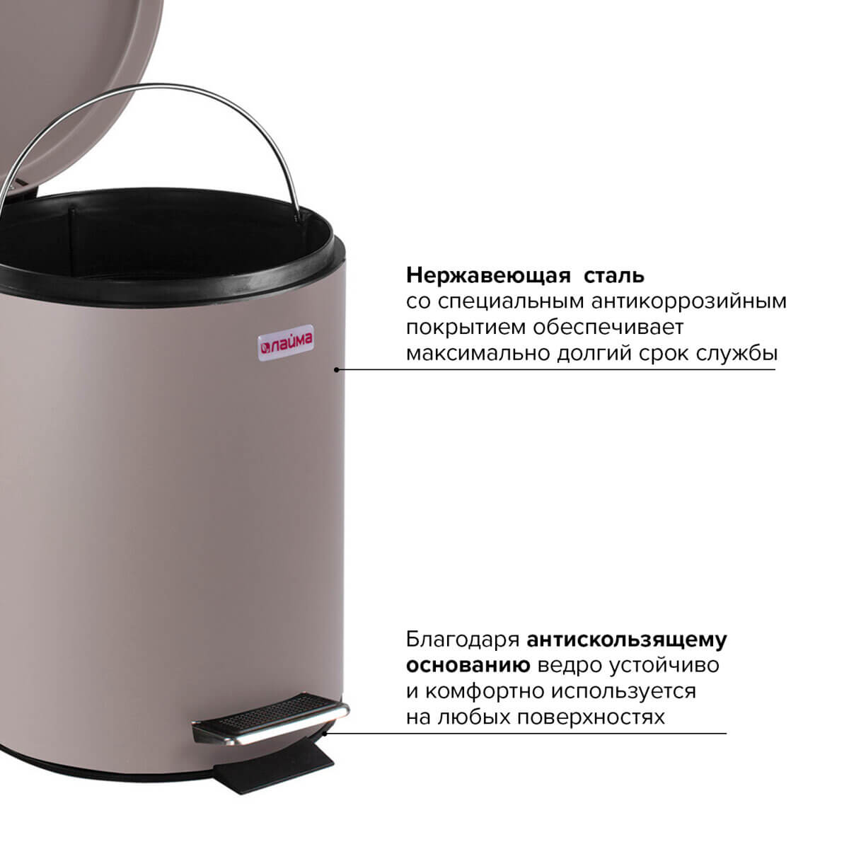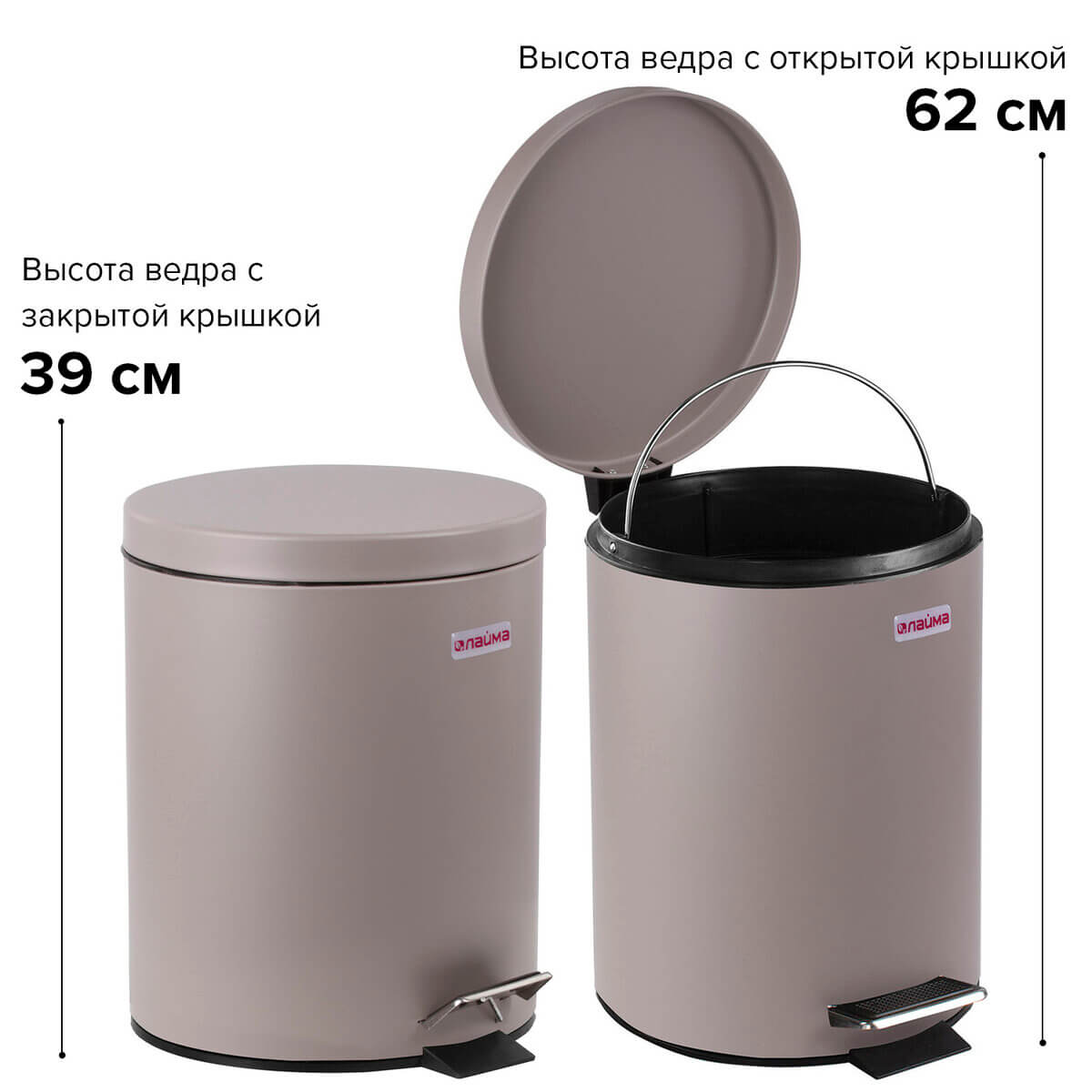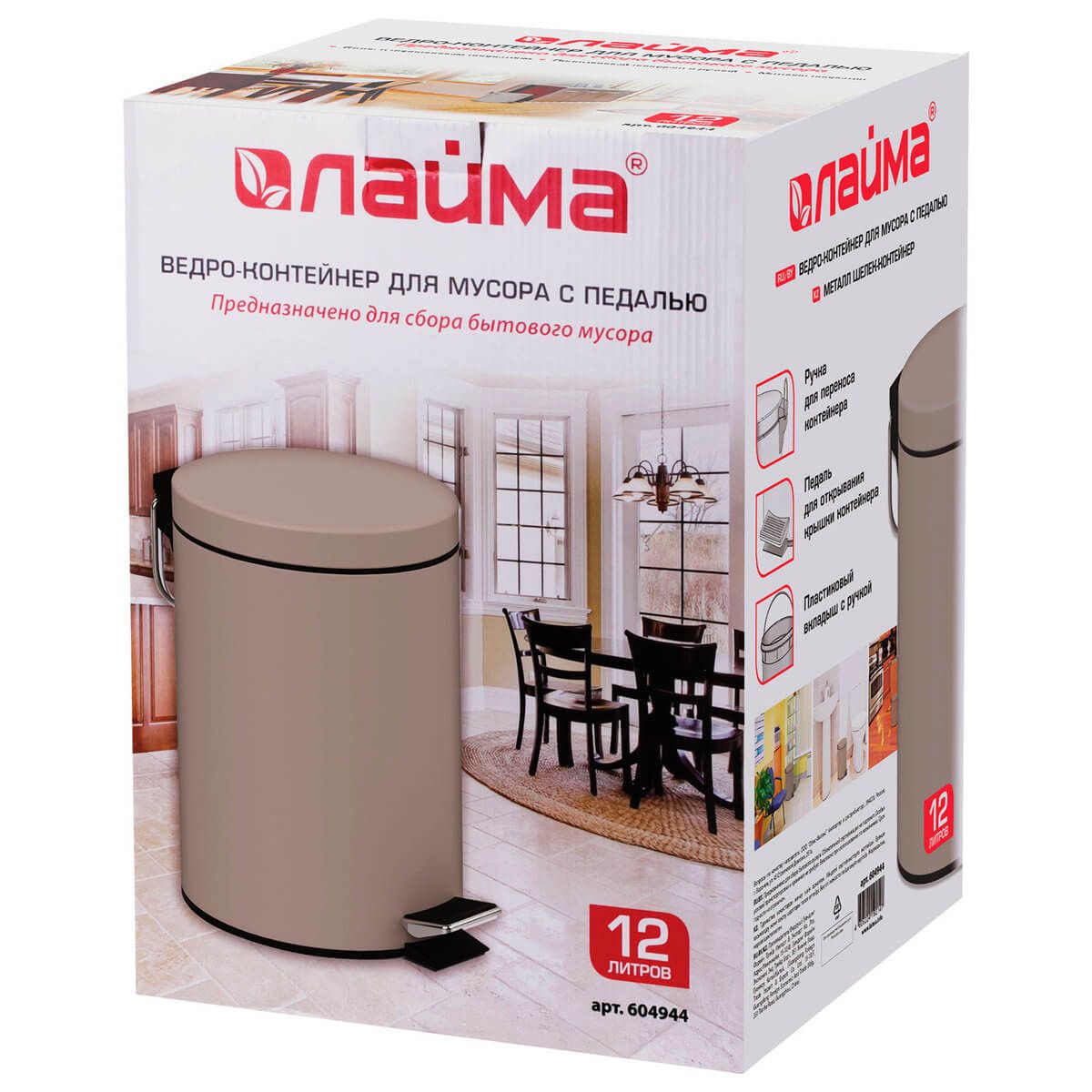 Ведро-контейнер для мусора (урна) с педалью LAIMA Classic, 12 л, серое, матовое, металл, со съемным внутренним ведром